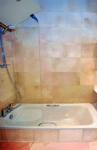 Modern no-dig solution for damaged shower drain pipes, creating a new pipe within the old one without extensive bathroom demolition.